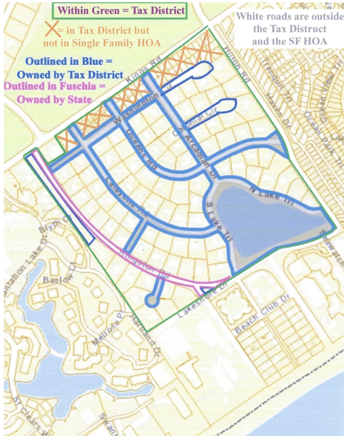 The map below shows the borders of the Arcadian Shores Special Tax District.